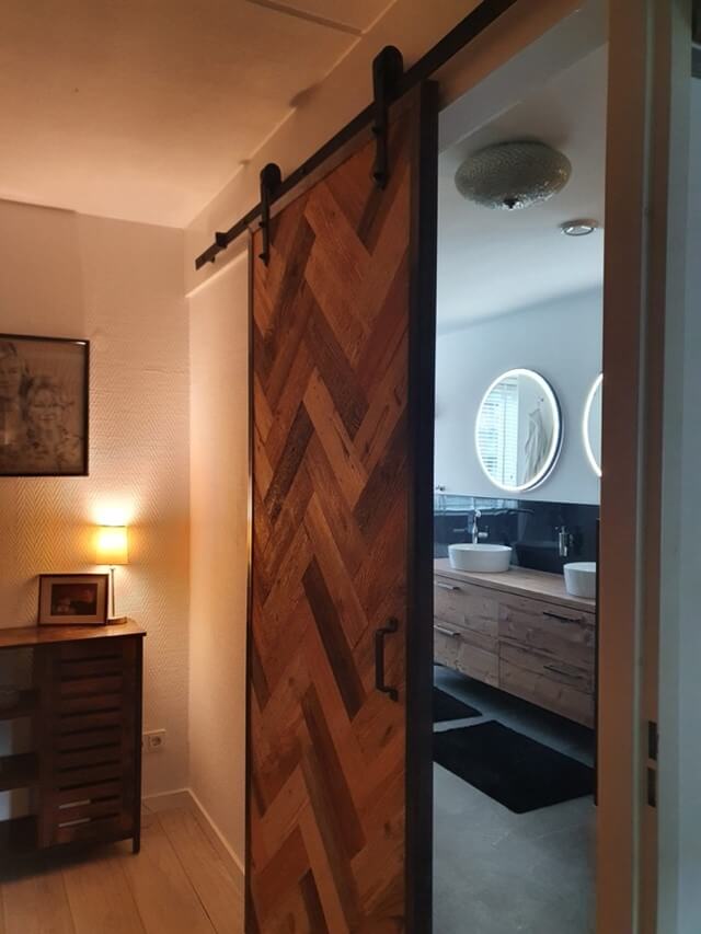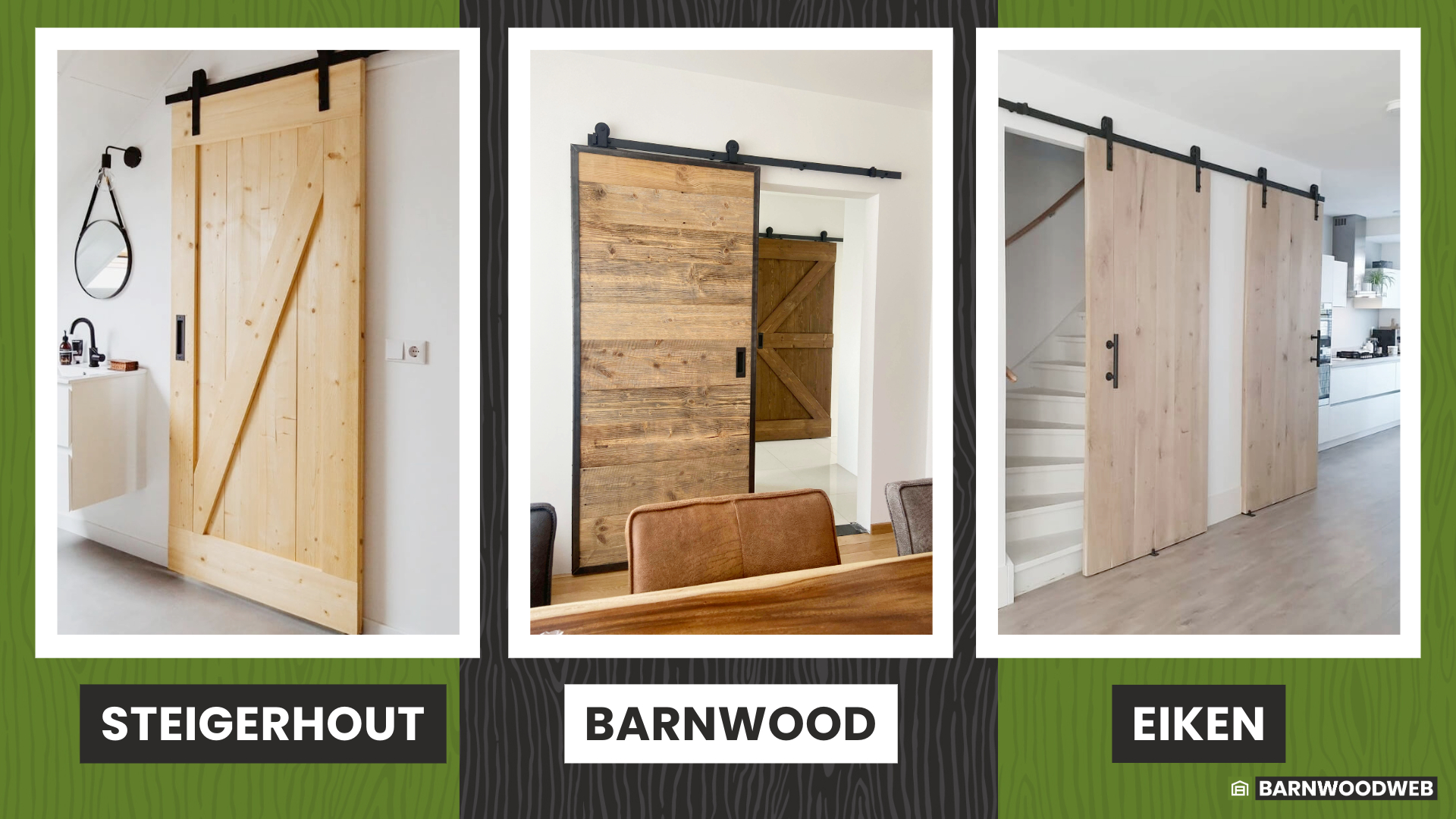 Let’s go! We beginnen bij het kiezen van de juiste houtsoort voor jouw loftdeur. Hier begint het allemaal mee, want het type hout bepaalt voor een groot deel de uitstraling en het karakter van de deur. Ga je voor steigerhout, dat lekker robuust is? Dit past perfect past bij een industrieel of stoer interieur. Of spreekt de charme van Barnwood je meer aan? Hierbij geef je het hout een tweede leven en past perfect bij een landelijk, Bohemian of industrieel interieur. En laten we de klassieke elegantie van eiken loftdeuren niet vergeten. Eikenhout is sterk, duurzaam en heeft een prachtige afgewerkte look die goed past bij een klassiek of modern interieur. Welke houtsoort past het beste bij jouw persoonlijke stijl en de sfeer die je wilt creëren?