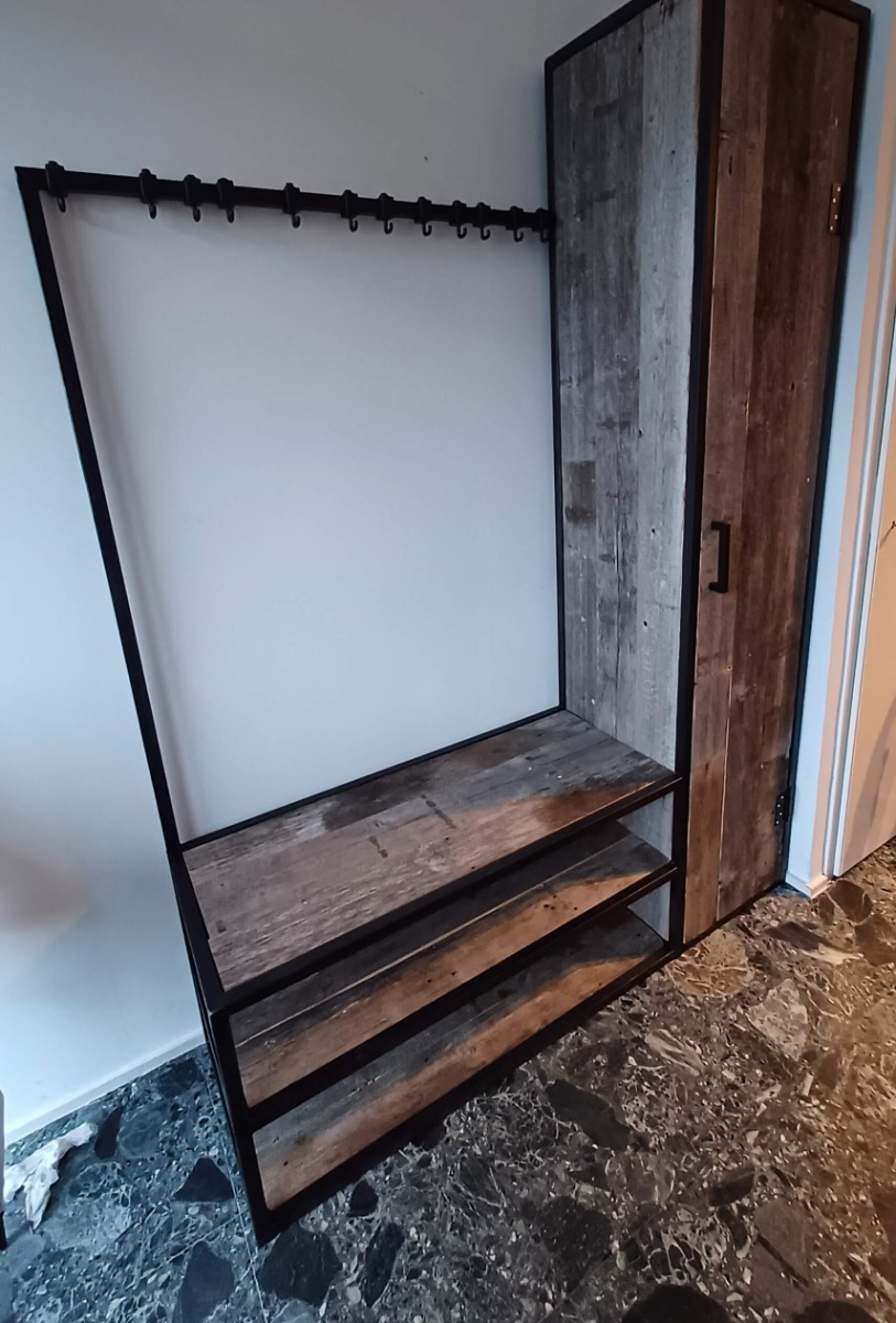 2. Stoere kapstok met plank en stalen buizen