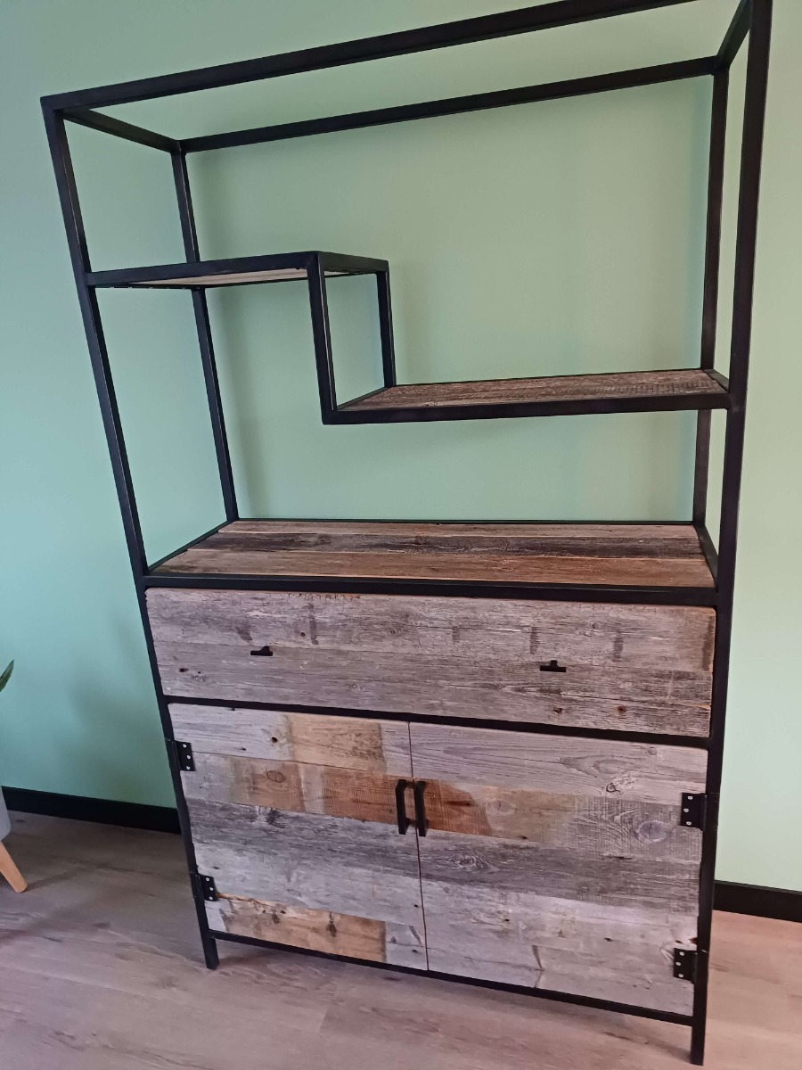 4. Een kast van barnwood en staal