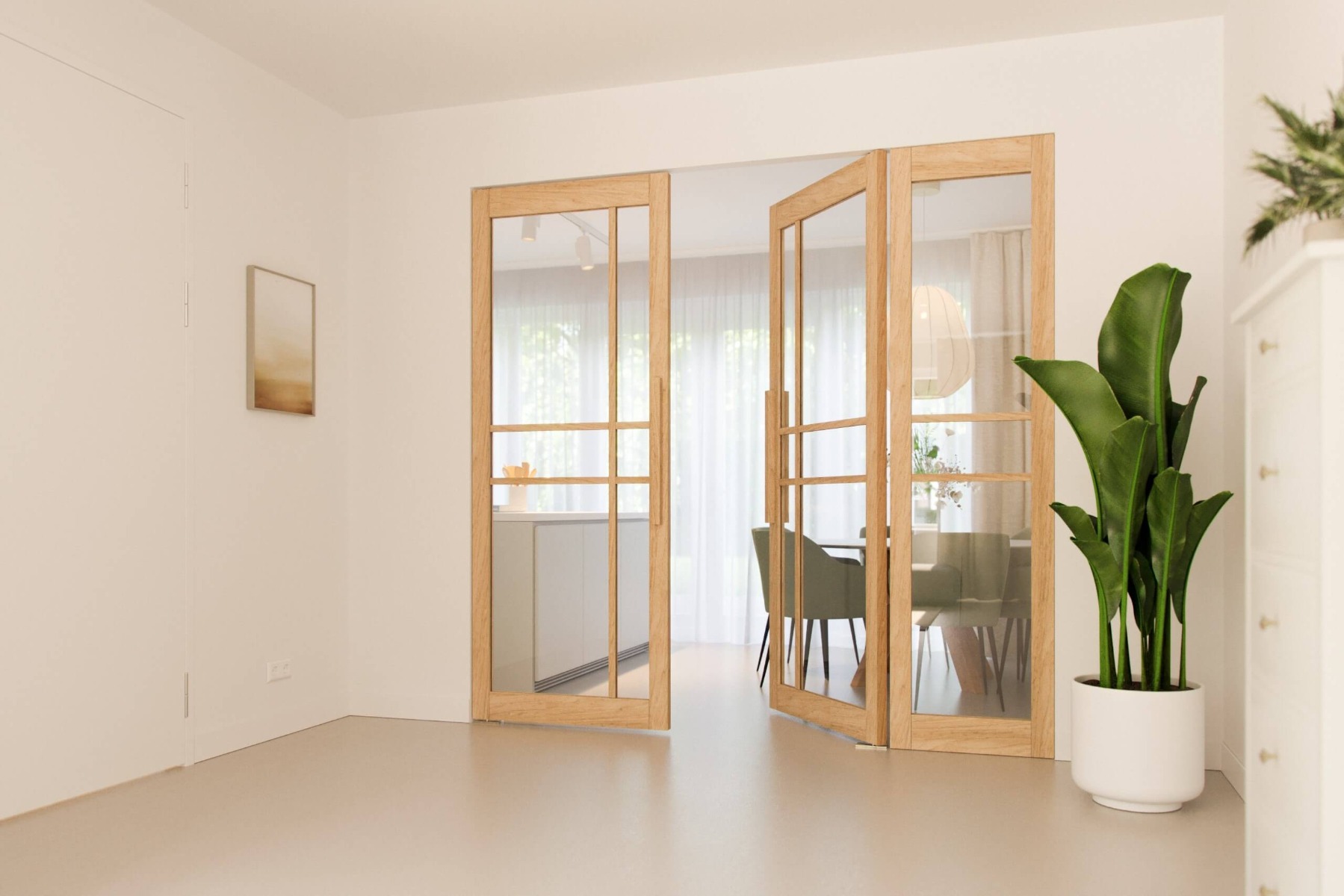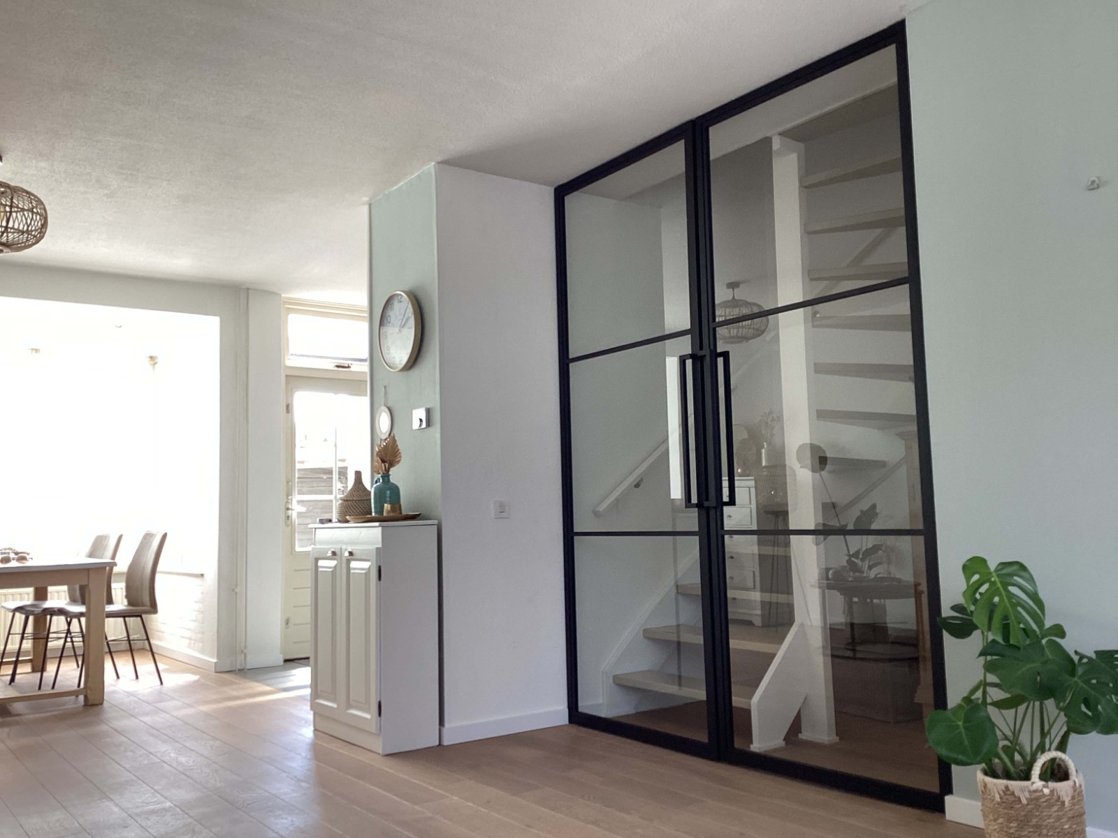 - Overweeg zijpanelen Als je net wat meer lichtinval wilt zonder de hele muur open te breken, kun je een taatsdeur combineren met zijpanelen. Dit geeft een extra ruimtelijk effect en maakt de doorgang optisch breder.