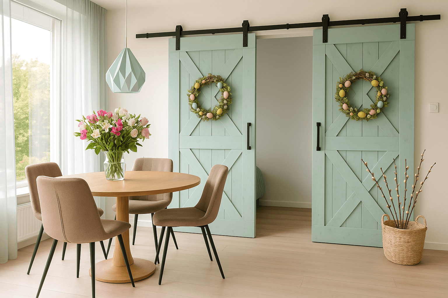 Een houten schuifdeur biedt niet alleen functionele voordelen, maar ook volop ruimte voor creativiteit. Tijdens Pasen kun je er op een leuke manier mee stylen. Hier zijn een paar ideeën: