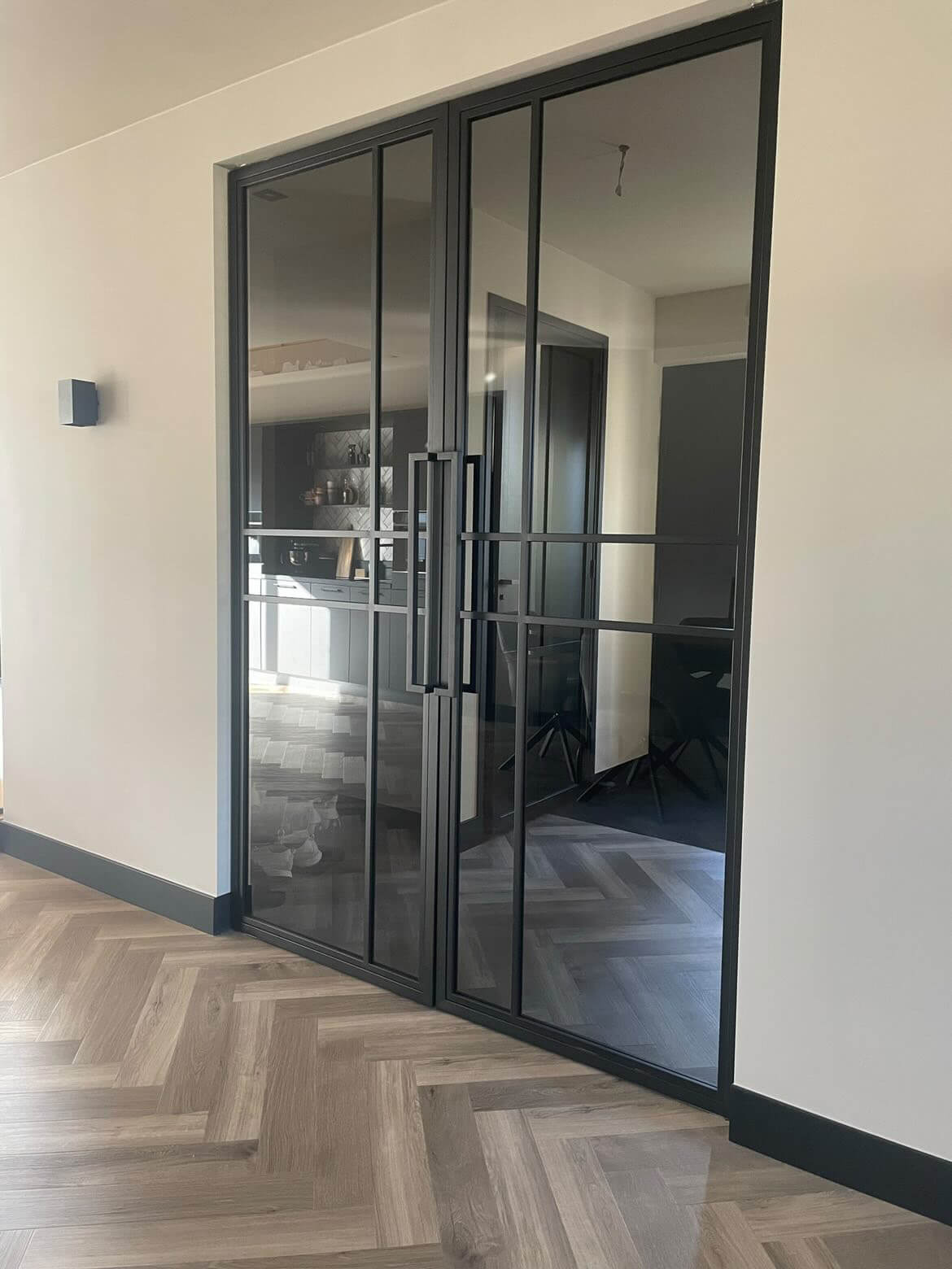 Dubbele stalen binnendeuren kunnen een vleugje grandeur toevoegen aan een woonkamer of eetkamer. Ze zijn ideaal voor binnenruimtes waar je een klassiek en statig gevoel wilt creëren. Deze deuren geven een gevoel van symmetrie en laten de maximale lichtinval door in beide kamers. Ze vormen daarnaast een indrukwekkende entree voor in elke kamer.