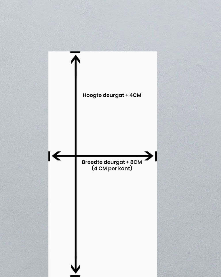 Voor hulp bij het bepalen van de juiste maat verwijzen we je graag naar onze maatwijzer. Hier lees je precies hoeveel groter de deur moet zijn dan de opening en welke montage het beste past bij jouw situatie.