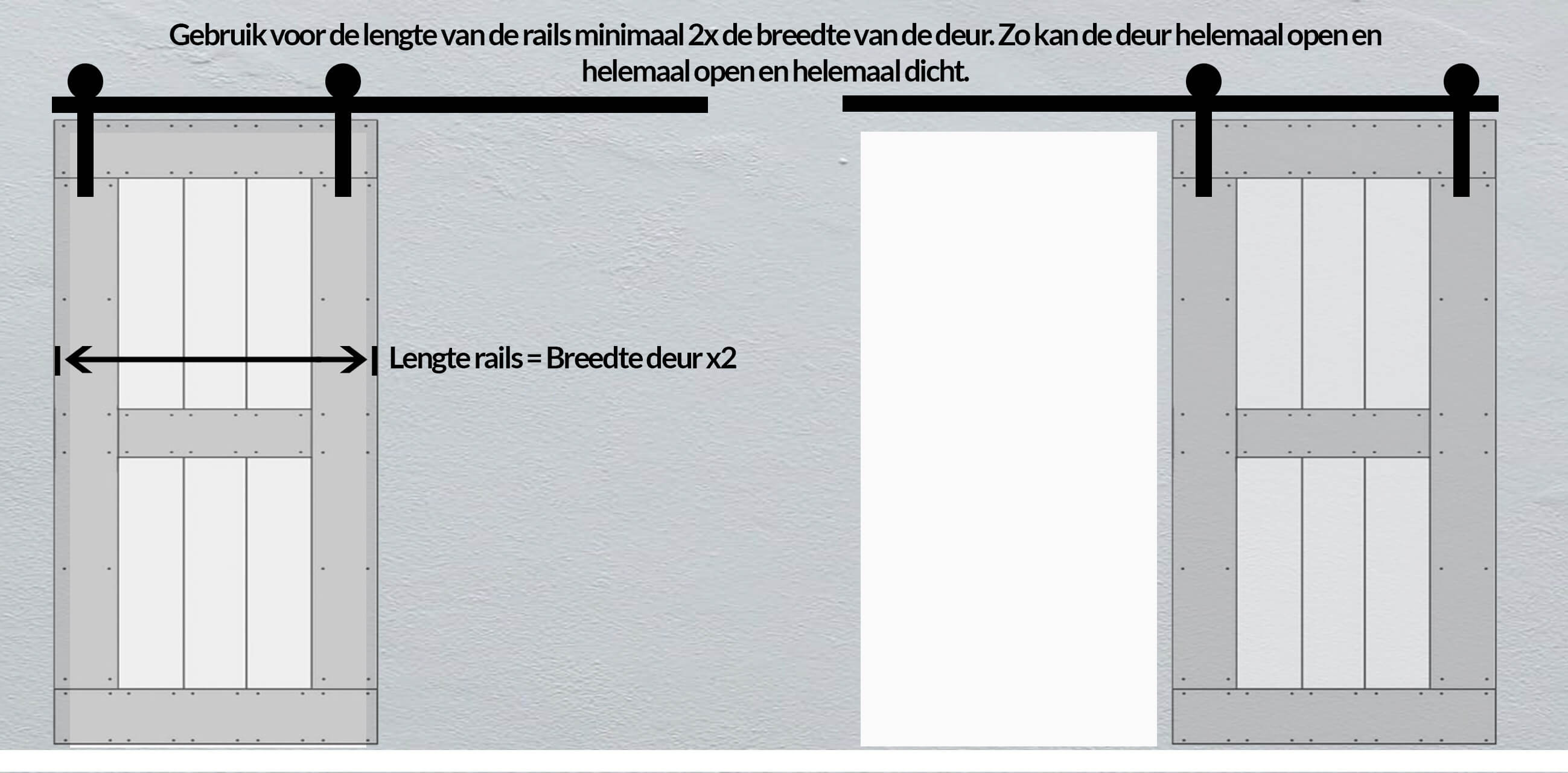 | Raillengte | Minimaal 2 × de deurbreedte |