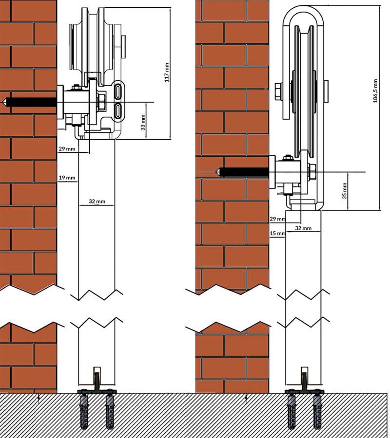 | Vloer–plafondafstand incl. systeem | Spaakwiel bovenop: deurhoogte + 20 cm |