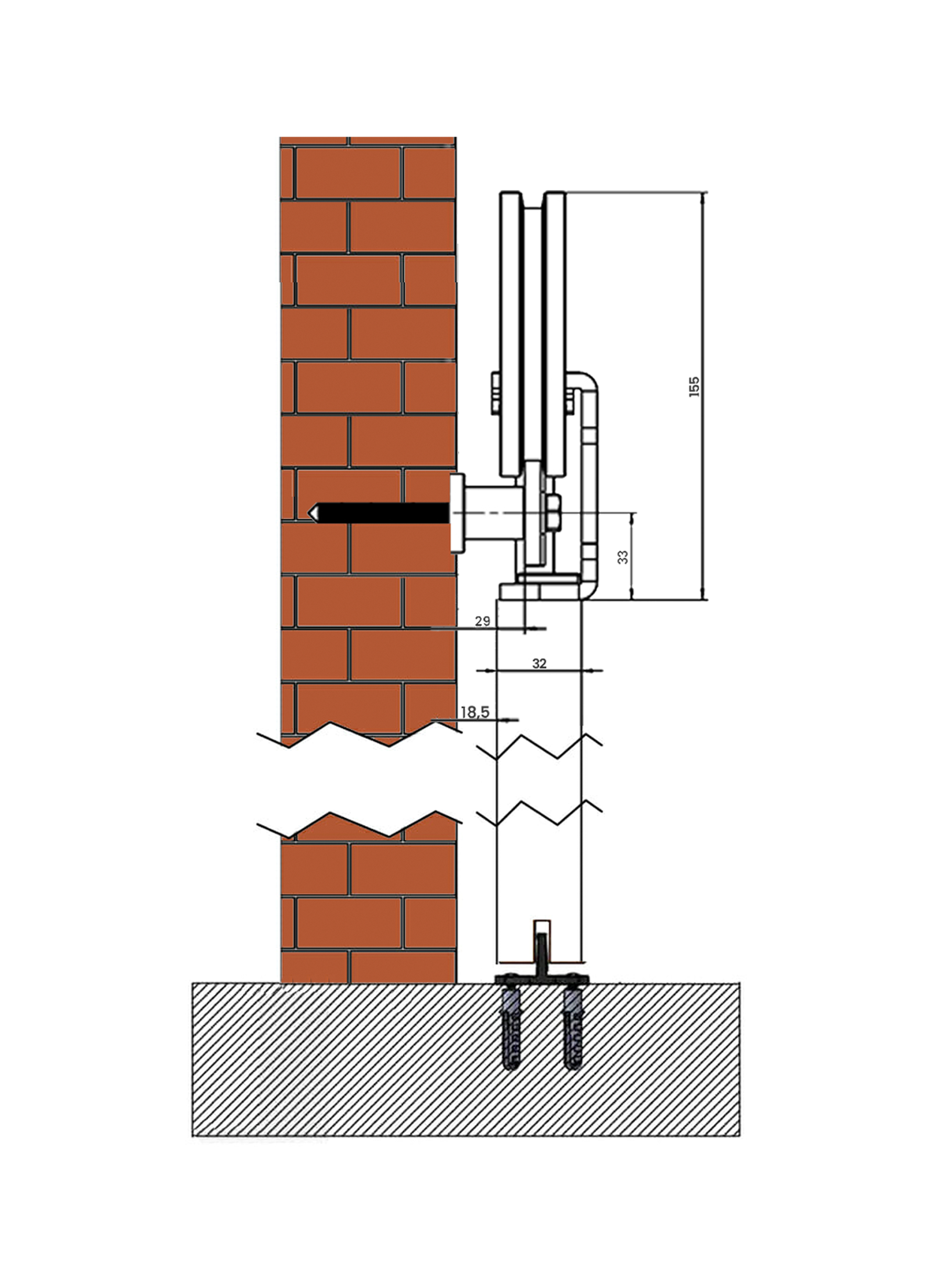| Vloer–plafondafstand incl. systeem | Spaakwiel bovenop: deurhoogte + 20 cm |